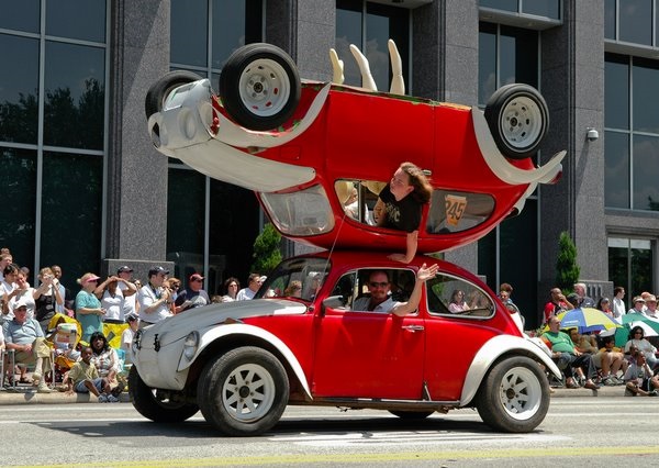 You must have seen the double decker bus but have you seen the double car? A car is kept upside down on a car which makes the design not only exciting but also scary for the person who sits in the upside car.